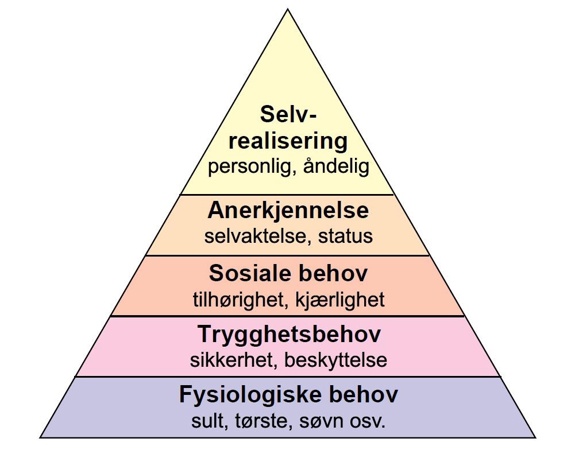 Tilvenningen vår baseres blant annet på teori fra Maslows behovspyramide, som dere ser illustrert ovenfor. Maslows teori er basert på at menneskers behov begynner fra bunn av pyramiden, for så å kunne utvikle seg videre oppover. Det er de 3 første trinnene i pyramiden som hovedsaklig er relevant for oss i tilvenningsperioden.