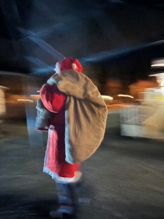 Barna hadde hodelykter eller lommelykt, og koste seg sammen i mørket. Etter å ha gått rundt juletreet, dukket det jammen opp en kjent, skjeggete fyr:-)