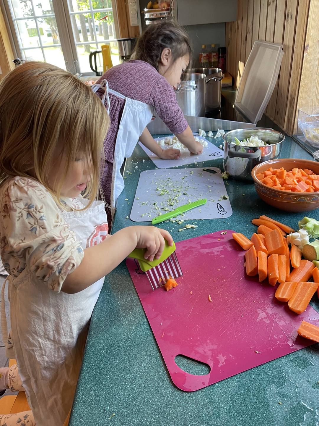 Vi vil fortsette med LIV og RØRE. Dette omhandler å være i aktivitet og bruke kroppen på ulike måter. Eks i samling, lek, ute, og spontant. Det omhandler også å utforske mat. Vi har mat forberedelser hverdag og ønsker at barna skal være en del av dette. Det kan for eksempel være å dekke på og av bordet, hjelpe til med varm mat, rundstykker, og frukt kutting. Få lov og tid til å smake og kjenne på maten og bidra til et positivt mat miljø.