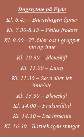 Her på Eyde har vi store puter som fungerer som et utgangspunkt for livlig sosial lek mellom de minste barna. Her kan de leke både mange og lenge uten at voksne trenger å være med. Gjentatt over tid kan slik lek ende opp som kjente og kjære rutiner som barna stadig vender tilbake til (Løkken, 2004, s. 15). Noe de gjør hos oss, de store putene er attraktive for alle.