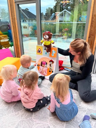 "Barna skal gjennom lek, sang og rim få erfaringer med brannvern og utvikle sitt språk. Dette ved å gjenta lyder og begreper, og delta i felles aktiviteter som styrker både trygghet, samspill og kommunikasjon."