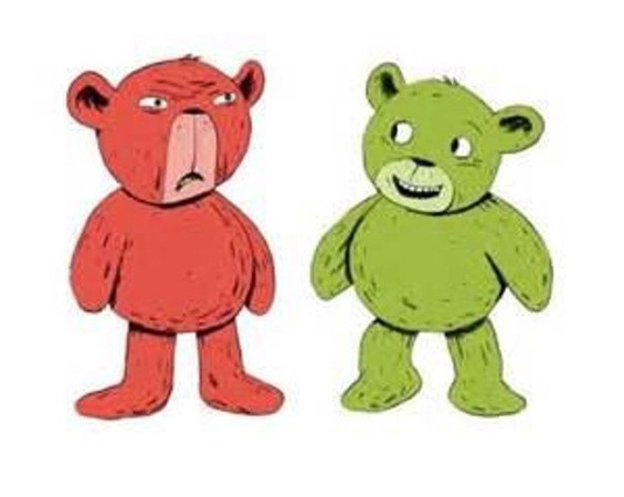 "Røde og grønne tanker" er et konsept fra den norske Psykologisk Førstehjelp-metoden, som bruker bamsene Rød og Grønn for å lære barn (4–7 år) om følelser og tankemestring i barnehagen. For de aller yngste barna vil vi kun bruke bamsene som symboler på gode og vonde følelser. Vi viser bilder av dem og henviser til grønne og røde følelser når vi snakker om temaet, men uten å legge vekt på selve tankebegrepet, siden dette er mer aktuelt for eldre barn.