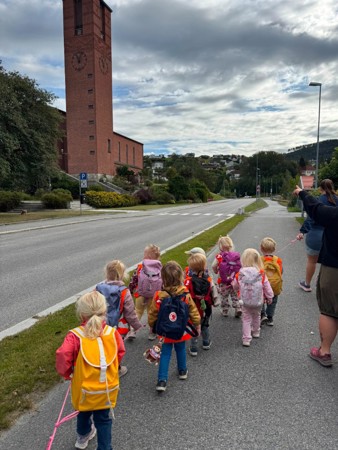 Høsten har kommet for fullt og vi har allerede hatt mange flotte dager i September. Vi har vært mye ute, både i og utenfor barnehagen. Vi har blant annet vært på turer til Sætrebo, Admini og Eplehagen. Barna koser seg på tur, vi øver på å gå med tau og de nye plassene er kjempe spennende å utforske.