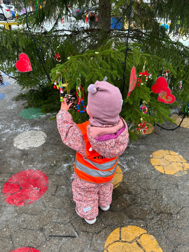 Vi har også begynt å øve på julesanger frem mot juleavslutningen. Helt mot slutten av måneden deltok vi i en felles markering på torget sammen med flere andre barnehager, hvor barna var med og hang opp juletrepynten vi hadde laget– en fin opplevelse som skapte fellesskap og ga barna en følelse av å bidra med noe eget. 🎄