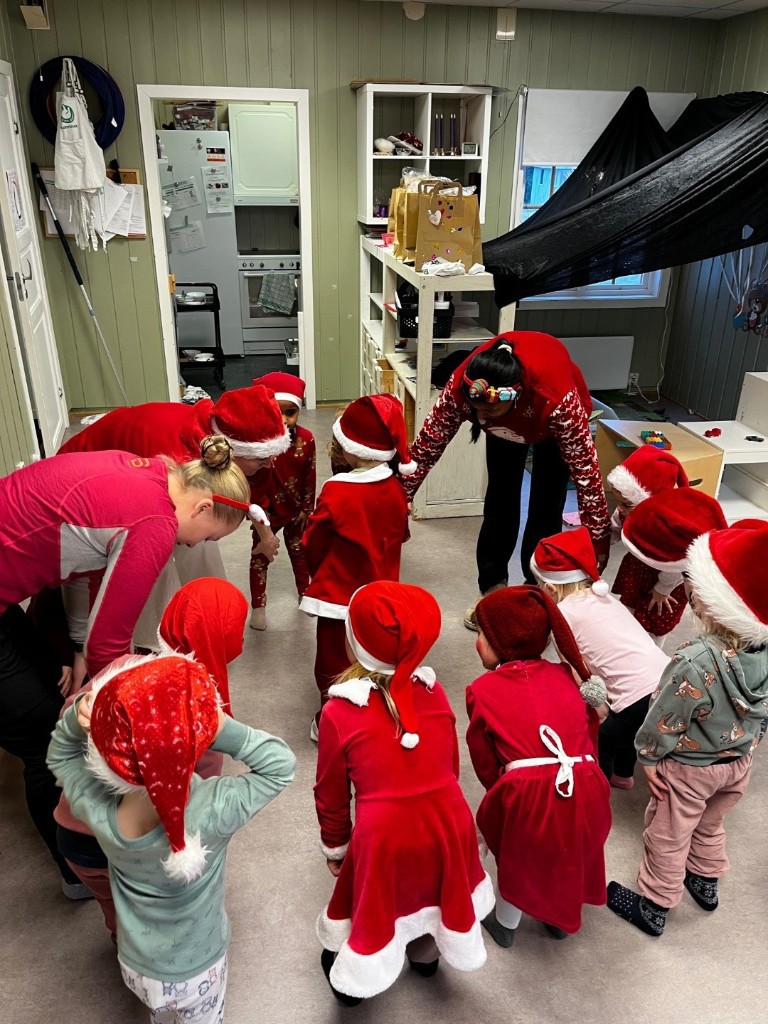 I uke 51 hadde vi bakeuke, her bakte vi pepperkaker og avsluttet med å pynte pepperkakene med melis og nonstop på nissefesten. Gjennom desember hadde vi en del juleverksted, noen ganger for å lage julegaver og andre ganger kun for gøy. Å leke og bli kjent med ulike materialer gir inspirasjon, skaperglede og stimulerer både finmotorikk og fantasi.