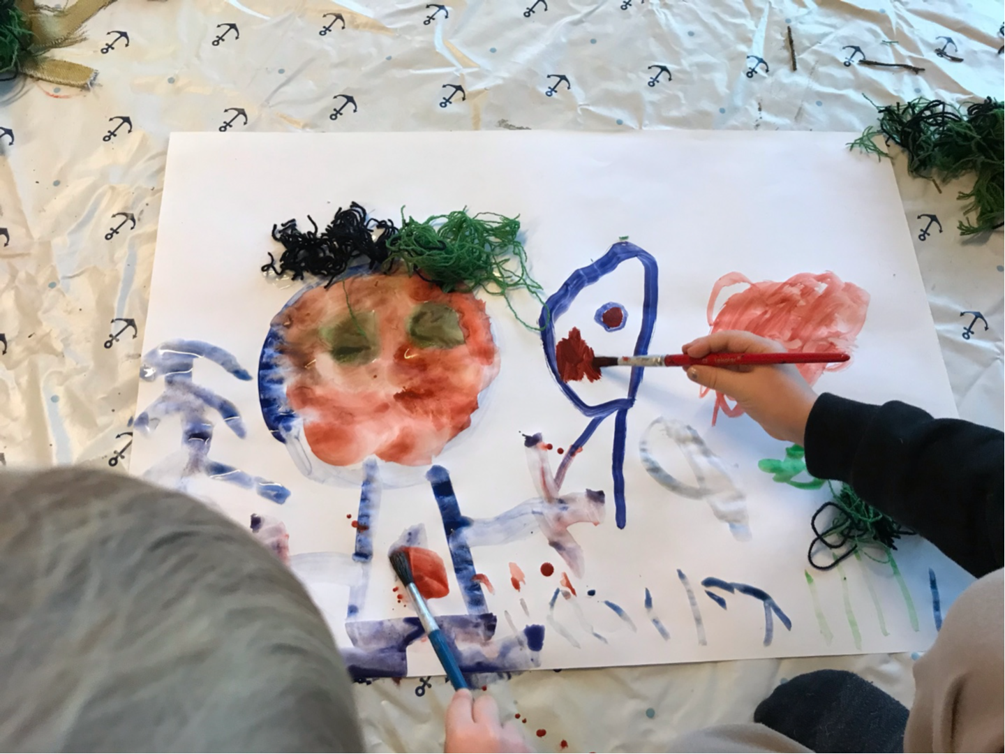 Vi har skapende aktiviteter med samisk tema der barna kan få utfolde seg kreativt.
