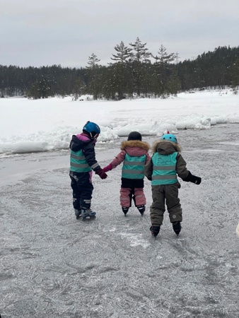 Vi tok turen til Tinnemyra og gikk på skøyter, til glede for både store og små! Vi oppholdt oss ved stranda og begynte med litt lunsj før barna tok skøytene på og satte i gang. De fikk utfordret seg med balanse og koordinasjon, og selv om det ble en del knall og fall fikk de fort teken på det. Det ble en veldig fin dag og alle fikk prøvd seg på, både med og uten skøyter. Fin motorisk trening, felles opplevelser i fin natur og flere sto på skøyter for aller første gang.