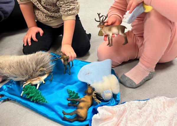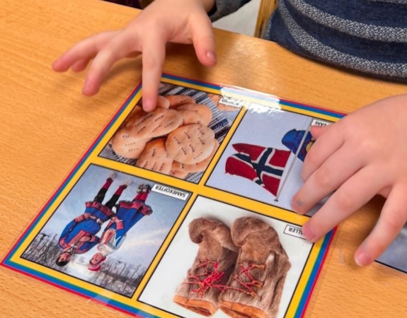 Februar startet med 2 uker hvor tema vårt var "med samisk blikk" og vi har hatt fokus på samisk kultur. Vi har gjennom disse ukene lytte til musikk, lest eventyr, sett i bøker, brukt konkreter i samling og mindre grupper og hatt noen aktiviteter der vi har malt nordlys med salatslynge og det samiske flagget med pensel, alt med fokus på samisk kultur. Vi har til måltidene kost oss med bidos og gahkko(samisk brød).