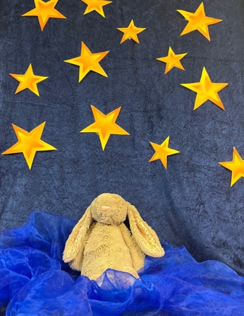 - Photoshoot hadde vi også sammen med bamsene, med blå stjernehimmel som bakgrunn.